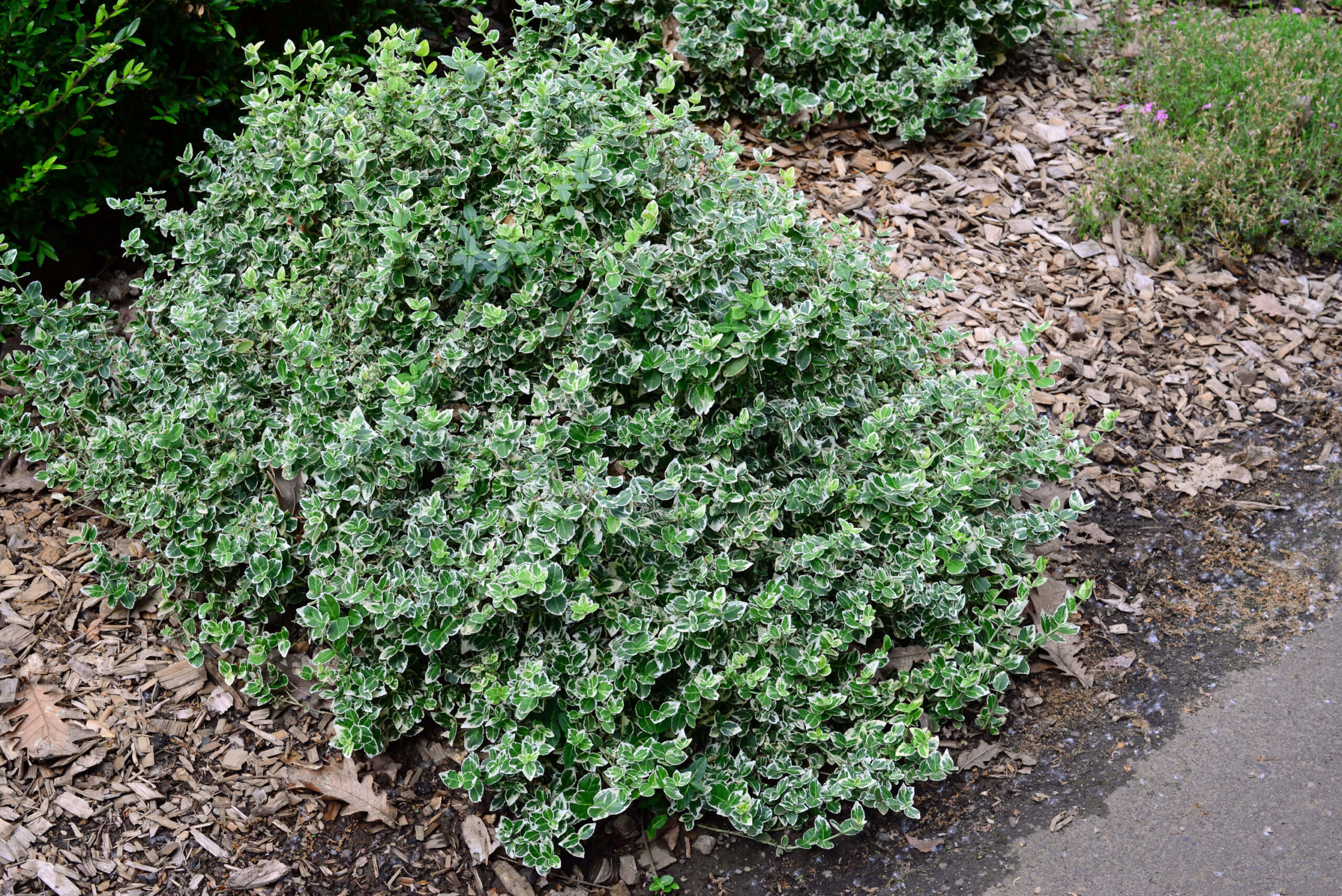 Бересклет (бруслина) Форчуна Silver Queen / Euonymus fortunei Silver Queen — декоративний вічнозелений кущ із виразним строкатим листям, який цінується за світлу, ошатну окраску та універсальність у садовому дизайні. Формує компактний, густий кущ із повзучими або злегка піднімаючимися пагонами, що добре тримають форму та легко піддаються формуванню.
