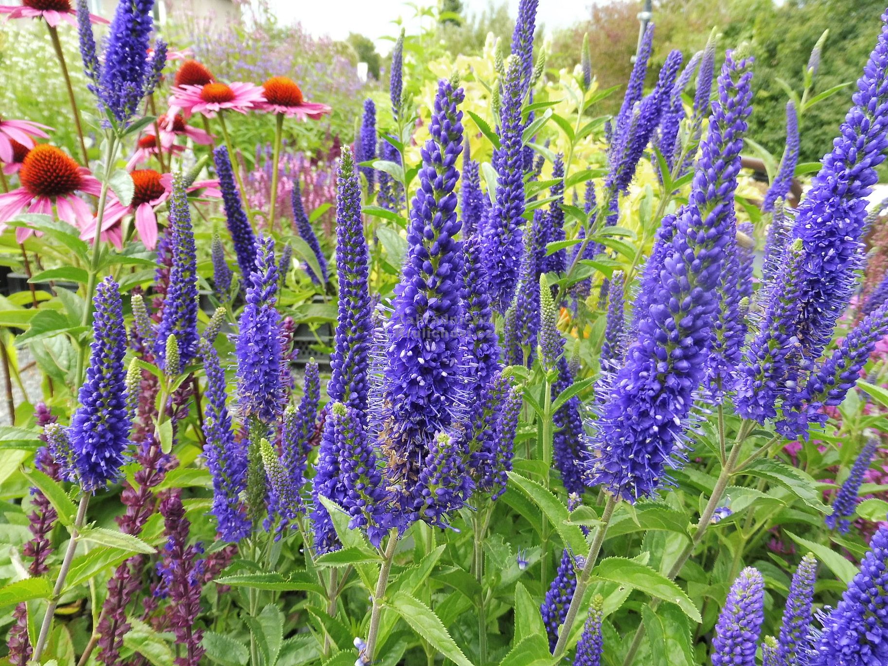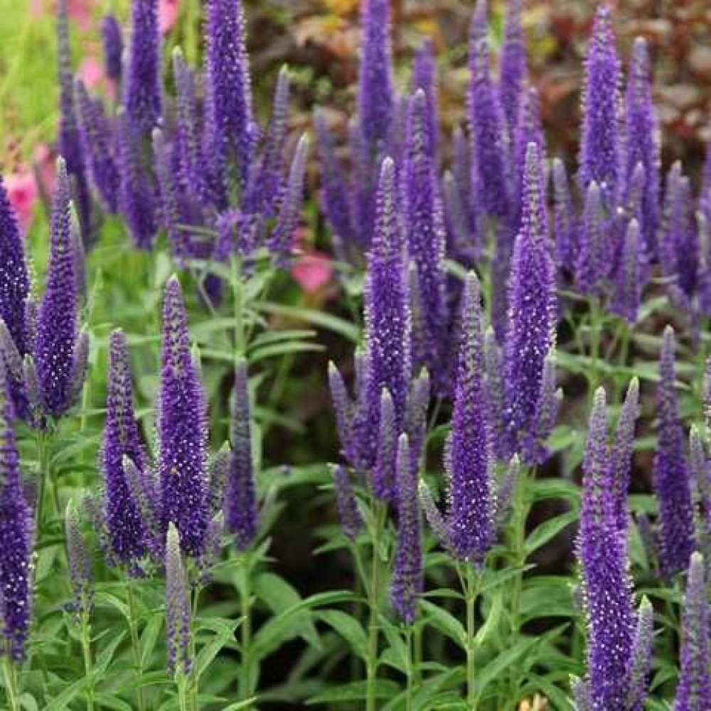 Вероніка довголиста Marietta – багаторічна рослина заввишки 70-90 см з прямостоячими стеблами та темно-зеленим листям, яка прикрашається вузькими фіолетово-синіми квітковими колосками з початку літа до осені. Чудово підходить для бордюрів та міксбордерів.