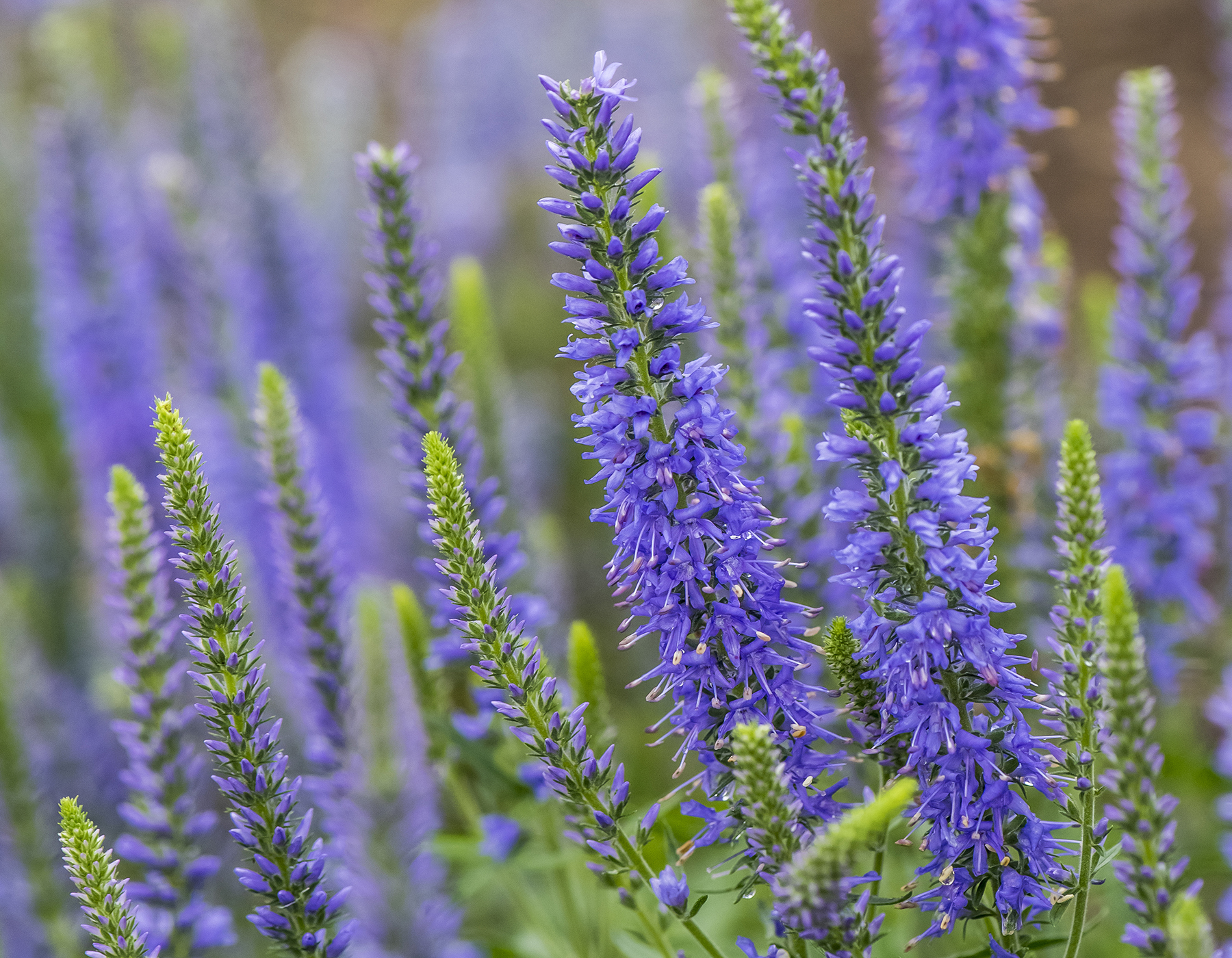 Вероніка колосиста Blue Explosion – декоративна квітуча багаторічна рослина заввишки 30-60 см, яка утворює щільні кущі з вузьким зеленим листям і ефектними інтенсивно‑синьо‑фіолетовими квітковими колосками, які прикрашають сад від кінця весни до пізнього літа. Цей сорт особливо популярний у бордюрах, кам’янистих садах та міксбордерах завдяки своїй тривалій декоративності та здатності приваблювати бджіл і метеликів.