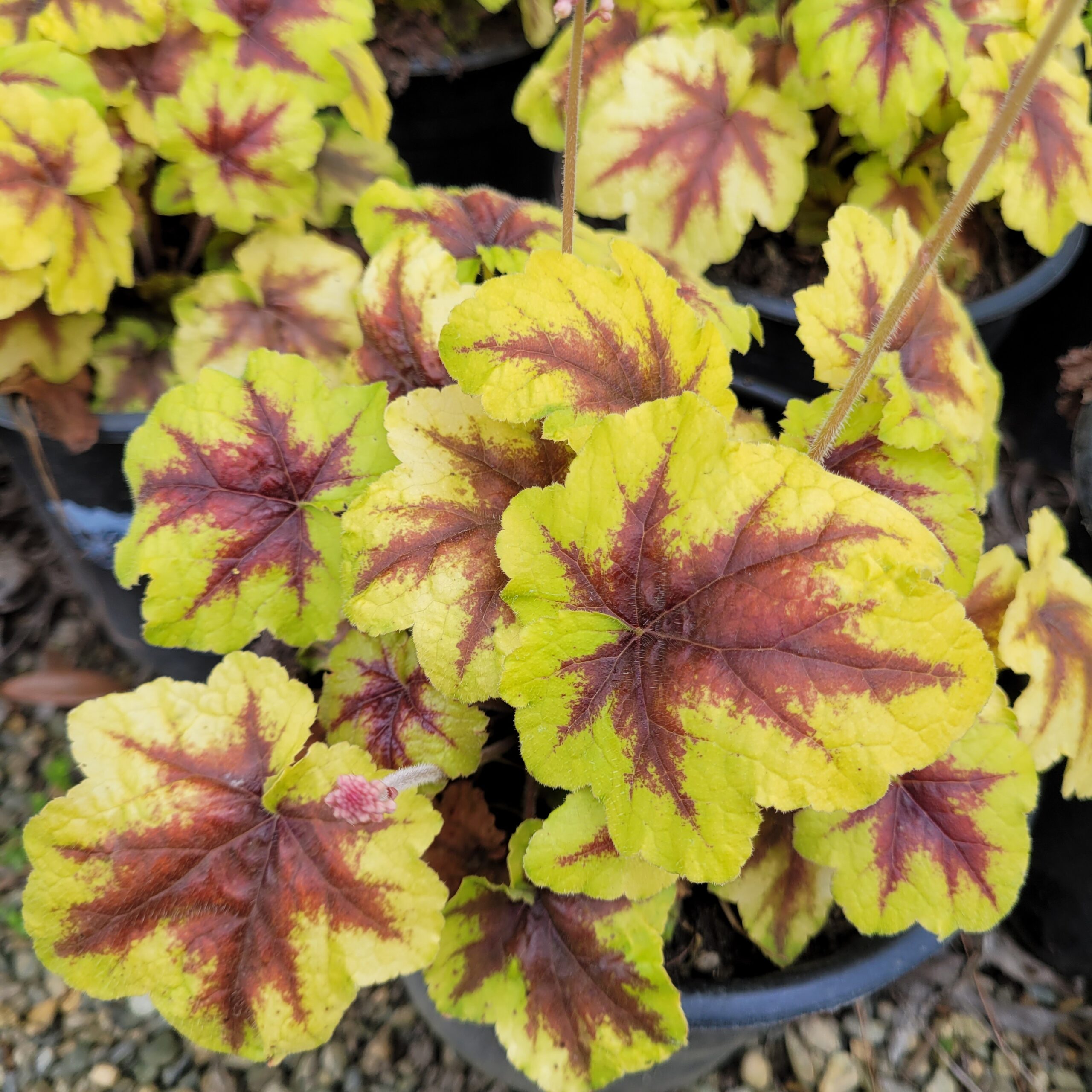 Гейхера Catching Fire — декоративна багаторічна рослина , яка вирізняється надзвичайно ефектним забарвленням листя та декоративністю протягом усього сезону. Цей сорт формує компактні, щільні кущики заввишки близько 25–30 см з хвилястим, глянцевим листям, яке протягом року змінює відтінки від насичено-жовтого до салатового. Навесні та на початку літа над листям з’являються тонкі квітконоси з дрібними кремово-білими квітками, що надають рослині додаткової легкості. Catching Fire прекрасно виглядає у квітниках, бордюрах, міксбордерах, контейнерних композиціях та в напівзатінених садових зонах.