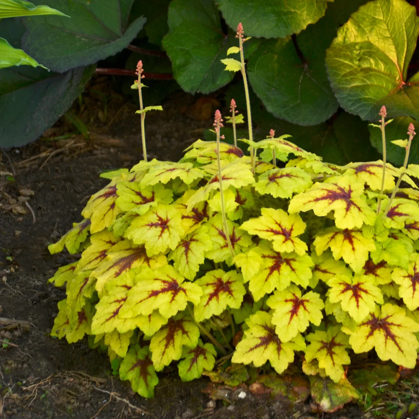 Гейхера найкраще росте у напівтіні або на ділянках із розсіяним сонцем, де її листя зберігає насичений колір і не втрачає декоративності. Ґрунт має бути родючим, легким та добре дренованим, із помірною вологістю. Під час посадки важливо не заглиблювати точку росту. Між рослинами рекомендовано залишати 25–30 см, щоб кущі могли вільно розростатися та добре провітрювалися.