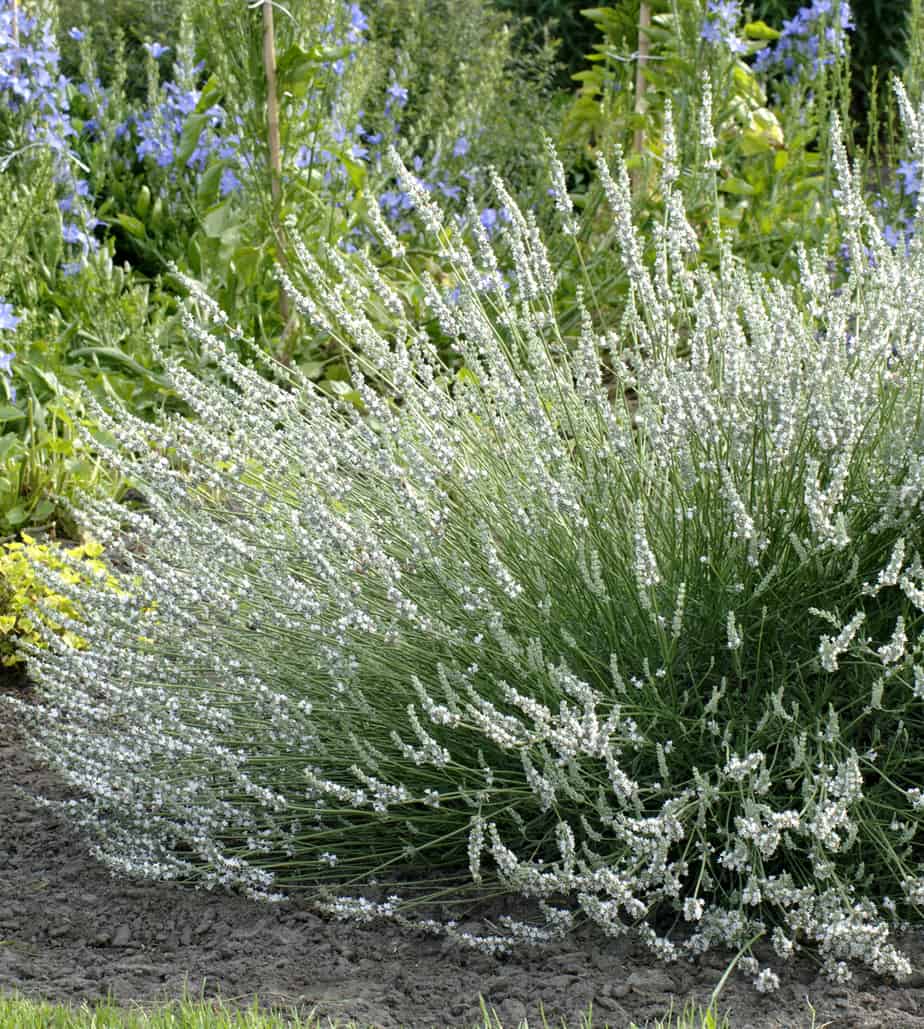 Лавандин Edelweiss / Lavandula × intermedia Edelweiss – декоративна багаторічна ароматна рослина, яка формує компактний, густий кущ із вузьким сріблясто-зеленим листям та витонченими колосоподібними суцвіттями білого кольору. Особливістю сорту є його ніжне, світле цвітіння, яке створює ефект легкості та елегантності в саду, а також приємний, насичений лавандовий аромат. Цвіте рясно з середини літа, довго зберігаючи декоративність. Висота рослини становить 60-80 см, що робить її чудовим вибором для бордюрів, міксбордерів, ароматичних садів і контейнерного вирощування. Сорт приваблює бджіл і метеликів та гармонійно поєднується з іншими багаторічниками й декоративними травами.