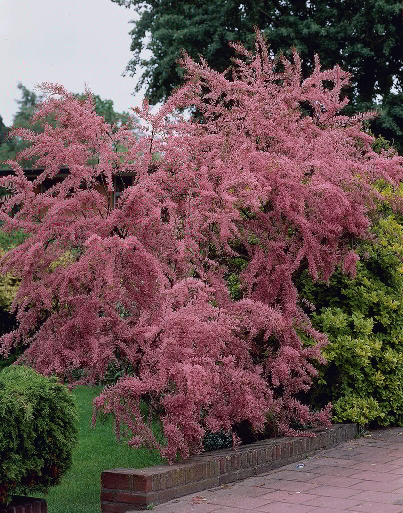 Цінність рослини визначають дрібні рожеві квітки, які утворюють щільні пухнасті суцвіття на кінцях гілок. Цвітіння настає в червні–липні і створює легкий, романтичний ефект, надаючи саду легкості та декоративності. Після цвітіння кущ зберігає ажурність і декоративність завдяки тонкому зеленому листю.
